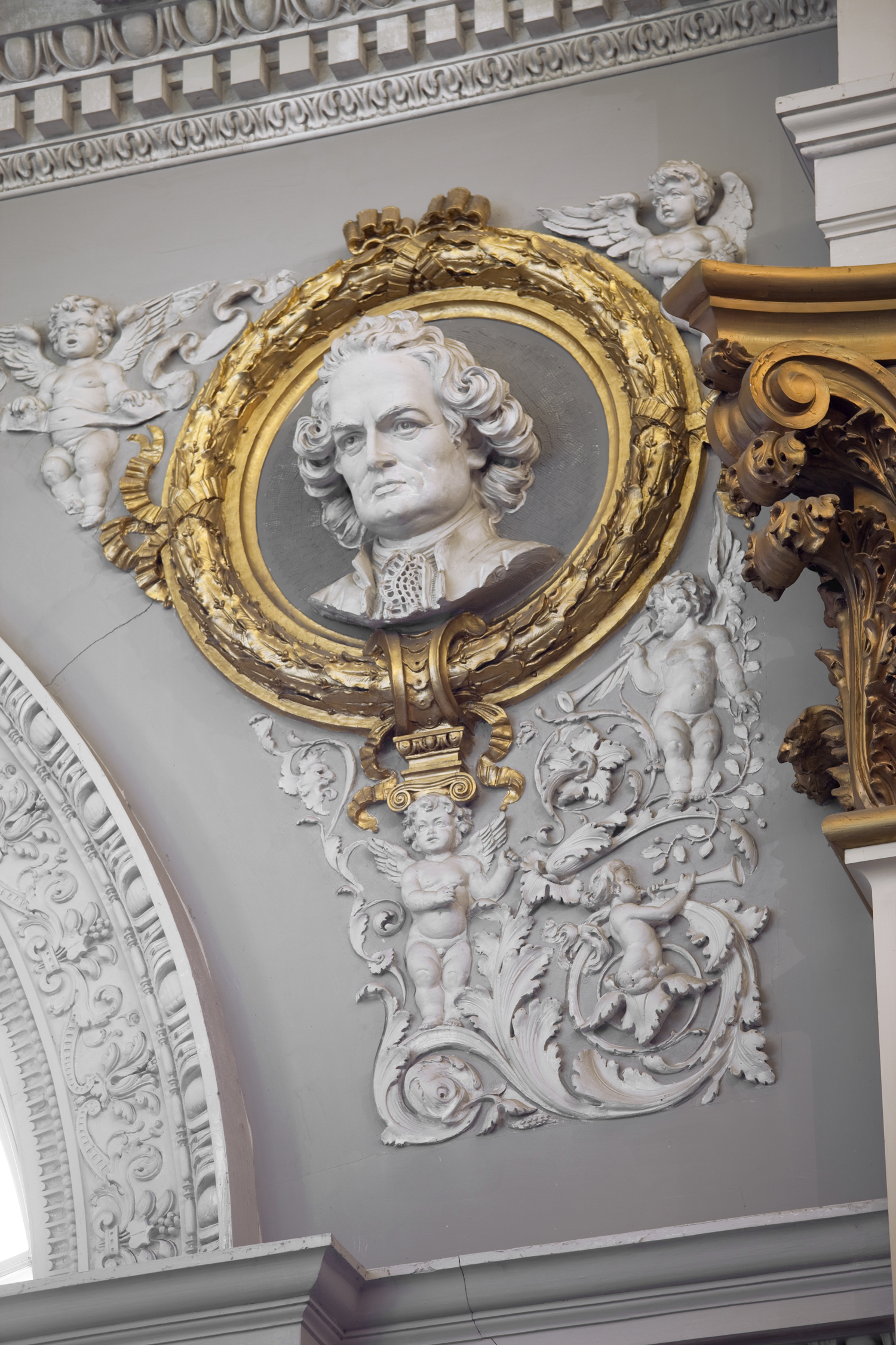 Though the hall was never meant to be used as a house of religion, the building follows the Latin Cross floor plan, and is currently a popular venue for weddings and other celebrations. The interior English baroque style design is in sharp contrast to the simple exterior of the Hall, much to the surprise of visitors.