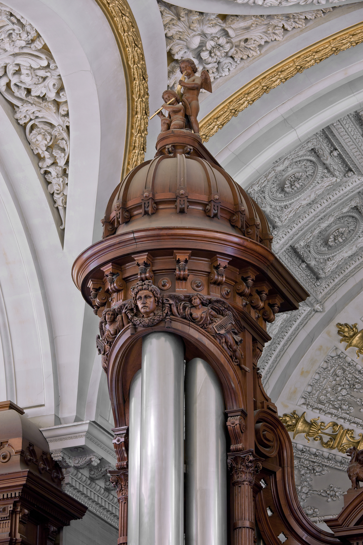 For the next 21 years the organ was the centerpiece of the Boston Music Hall — impressive in sound as well as look, with its imposing hand-carved case made of American black walnut and decorative pipes of burnished tin.